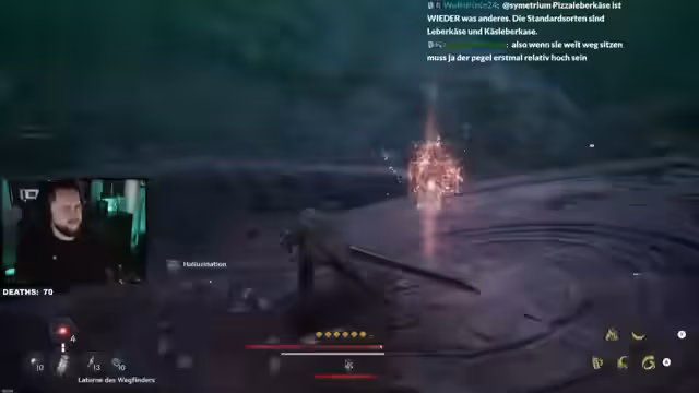 04:52:37Das Leveldesign des Spiels wird als eine Art 'Best-of' der FromSoftware-Spiele beschrieben, was positiv aufgenommen wird. Es wird die erfolgreiche Suche nach allen Kristallen und Töpfen hervorgehoben, was das baldige Ende des Levels andeutet. Es wird gescherzt, dass statt eines Bosskampfes eine Falle wartet, möglicherweise in Form eines herunterfallenden Klaviers. Nach dem Besiegen eines Gegners werden verschiedene Wege entdeckt, und es wird spekuliert, dass der Loot aus Kisten zufällig ist. Die Suche nach orange leuchtenden Items auf einer Lampe wird erwähnt, da diese möglicherweise wichtige Zettel sind. Ein neuer Angriff wird als sehr effektiv gegen Gegner beschrieben, insbesondere wenn diese gestunt sind. Der Chat bestätigt das Vorhandensein von Items auf einer Lampe, was eine erneute Suche auslöst. Es wird festgestellt, dass das Durchlaufen von Gegnern in Souls-Games oft eine gute Strategie ist.