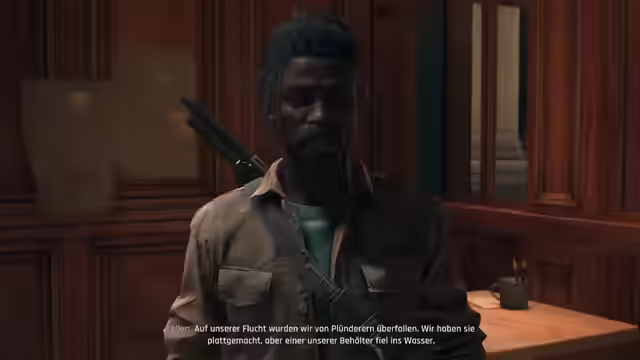 06:14:26Es wird der Wunsch geäußert, Aufgaben in der Stadt zu erledigen, um mehr Möglichkeiten zum Looten zu haben. Die Nebenaufgabe 'Oase im Nationalpark' wird in Erwägung gezogen und kurz angetestet. Es folgt ein 'Drogentrip', der als Nebenmission erlebt wird. Währenddessen muss der Charakter sich selbst bekämpfen, was als Kampf gegen die inneren Dämonen interpretiert wird. Nach Abschluss der Nebenmission, die als cool und spaßig empfunden wird, wird der Fokus wieder auf die Hauptquest gelegt. Es wird ein Fahrzeug gesucht, um zur markierten Position zu gelangen. In der Story wurde der Charakter verraten und versucht nun, den Baron aufzuhalten, wobei der Sheriff nun mit dem Baron zusammenarbeitet.