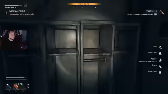 00:45:40Der Streamer findet eine Maschinenpistole und sortiert sein Inventar aus. Er überlegt, ob er ein Review-Video auf dem GameStar-Kanal machen soll. Der Streamer sieht das schon kommen, dass er den Salat hat und fragt sich, wie er da am schnellsten hinkommt. Er traut dem nicht mehr und wird sich da nicht festhalten. Der Streamer checkt das Basement aus und findet den Weg ins Lagerhaus. Er findet es cool, dass man hier überrumpelt werden kann. Der Streamer levelt als nächstes auf jeden Fall 69 AP Punkte und dass er Gegner auf dem Boden den Kopf zertreten kann. Er findet eine epische zweihändige Axt und wirft eine gewöhnliche Axt weg. Der Streamer repariert aus Versehen eine Waffe und behält Williams Messer als Andenken. Er zerlegt einen Feuerlöscher und überlegt, welche Modifikation er an seiner Waffe anbringen soll. Der Streamer vergleicht die Stats seiner Waffen und entscheidet sich für Säure.