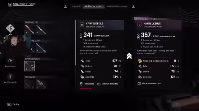 02:32:20Es wird ein Seil entdeckt und benutzt, um sich fortzubewegen. Ein legendärer Entwurf für einen Sägeblattwerfer wird gefunden, aber der Streamer bevorzugt Äxte, Katanas und Pistolen. Trotzdem wird der Sägeblattwerfer hergestellt. Eine neue Nebenmission wird entdeckt, bei der ein Schatz neben Silos gefunden werden soll. Der Streamer rollt ein Kabel ab, um nach unten zu gelangen. Es wird überlegt, wie man wieder nach oben kommt und die Leiter gefunden. Eine Werkbank wird gefunden und Waffen könnten verbessert werden. Der Sägeblattwerfer wird hergestellt und verbessert. Es wird ein Frost-Katana ausgerüstet.