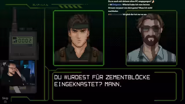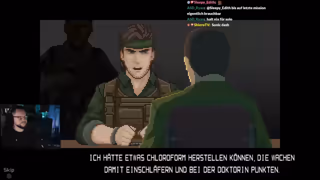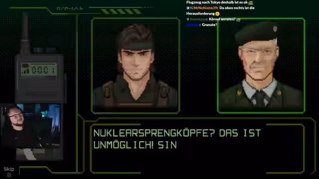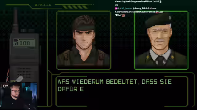 02:56:33Der Streamer navigiert durch komplexe Rätsel, bei denen er Hinweise von Gegenständen wie einem Minendetektor nutzen muss. Er konfrontiert sich mit Bosse wie dem Drill Sergeant und Machine Gun Mike, wobei er Strategien entwickelt, um die Gegner mit Chloroform, Granaten und Schleichen auszuschalten. Die Kämpfe erfordern präzises Timing und ein Verständnis der Schwachstellen der Gegner.