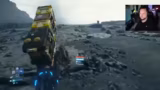 07:05:05Der Streamer erkundet die Welt von Death Stranding 2 und baut Straßen aus, wobei er das Belohnungssystem lobt. Er vergleicht seine Spielweise im Teil 2 mit dem Teil 1 und stellt fest, dass er im Teil 2 fauler aber aktiver geworden ist. Es tauchen viele GDs (Grimmer/Desaster) auf, und der Streamer beschließt, zu Fuß weiterzugehen, da ihm das Fahrzeug aufgegangen ist. Er baut einen Unterstand und nimmt verschiedene Materialien wie Granaten und Leitern mit.