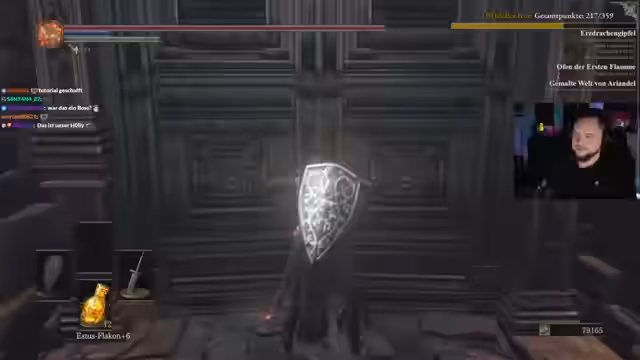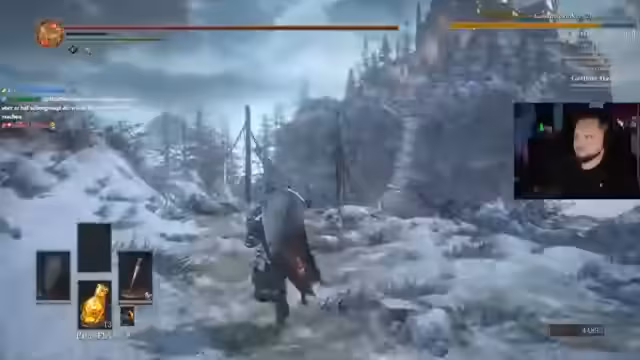 04:13:34Ein besonders hektischer Kampf gegen den Gargoyle endet knapp. Anschließend folgt der Pontiff-Sulyvahn, der für seine Parry-Mechanik gefürchtet ist. Der Streamer überlegt, ob er die Tänzerin vor oder nach dem Pontiff bekämpfen soll, was von einer strategischen Änderung der Route abhängt. Nachdem die Pontiff-Waffe verbessert wurde, wird die Entscheidung getroffen, sich von der ursprünglichen Route abzuwenden und sich stattdessen der Tänzerin zu widmen, um ein Risikomanagement zu betreiben.