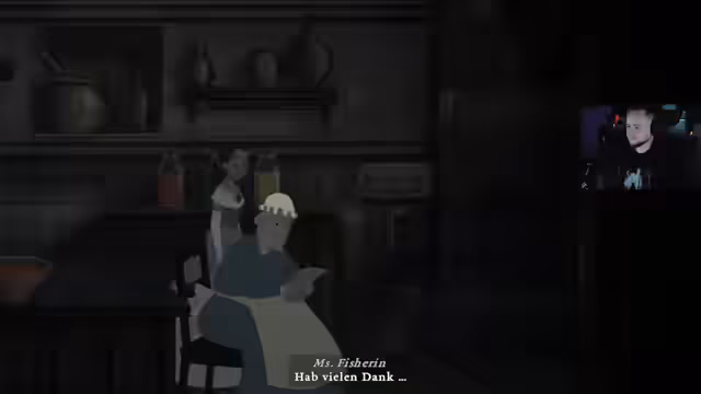 01:41:45Im Verlauf der Erkundung stößt der Streamer auf das Zimmer der Matrone, Mrs. Fisherine. Um es zu öffnen, wird ein spezieller Schlüssel benötigt, der sich in einem mit Fleisch gefüllten Teller verbirgt. Gleichzeitig muss ein Stromgenerator mit Kohle befeuert werden, um einen anderen Bereich mit Strom zu versorgen. Dies erfordert einen strategischen Ansatz: Die Matrin muss ausgetrickst werden, während gleichzeitig Gegenstände wie die Kohle eingesammelt werden. Der Streamer kombiniert Gegenstände, um die Mechanismen im Keller in Gang zu setzen und weitere Schlüssel zu finden.