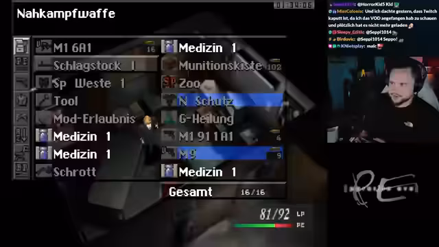 02:34:50Der Spieler öffnet eine Kiste und findet Heilung, die gegen Gift wirkt, sowie eine Verteidigungsverbesserung. Er überlegt, die Verteidigung in seine Rüstung einzubauen, zögert jedoch, falls er später eine bessere Rüstung findet, auf die er die Verbesserung übertragen könnte. Eine zuvor übersehene Kiste, die er bereits benutzt und wieder verschlossen hatte, wird erneut erwähnt. Angesichts bevorstehender, heftiger Kämpfe entscheidet sich der Spieler, seinen Granatwerfer einzusetzen und hofft, sich damit nicht selbst zu verletzen. Er analysiert seine Lebenspunkte, die bei 60 liegen, und plant, den Granatwerfer in Kombination mit der Pistole zu nutzen. Ein Kampf gegen einen giftigen Gegner erweist sich als besonders zäh, wobei der Spieler versucht, den Gegner zu einem Flächenangriff zu provozieren, um dessen Schüsse zu vermeiden. Nach dem Kampf stellt er fest, dass Heilungen auch außerhalb von Kämpfen eingesetzt werden können, was seine Strategie grundlegend ändert. Die grüne PE-Leiste wird als Mana-Leiste identifiziert, die für Parasite Eve-Fähigkeiten genutzt werden kann. Er findet Munition und sammelt Schrott, der sich jedoch nicht stapelt, was die Inventarverwaltung erschwert.