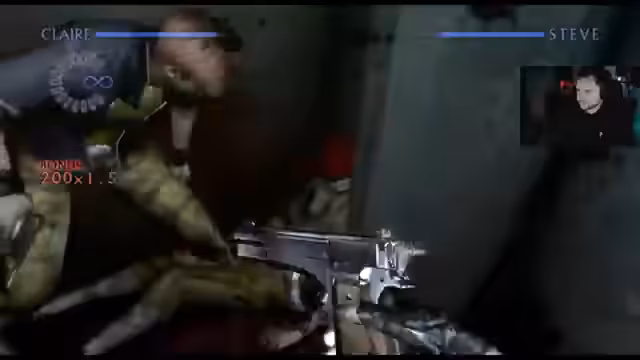 03:07:41Die Szene wechselt in das Trainingsgelände von Code Veronica. Steve Burnside und Claire Redfield stehen im Mittelpunkt. Der Streamer steuert Claire, um Steves Geschichte zu erleben, und erkundet das verlassene Anwesen. Er findet viel Gold, das er für das Aufwerten von Waffen nutzt, und stellt fest, dass das Spiel eine komprimierte Version der Originalgeschichte darstellt. Die Kamera und die Bewegungen werden als anstrengend für den Zuschauer beschrieben.