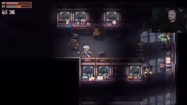 01:56:05Ein Versuch, zurückzugehen und zu speichern, scheitert, da der Gegner als zu stark ("tanky") eingeschätzt wird. Nach dessen Bezwingung scheint ein Mechanismus ausgelöst zu werden, der Licht einschaltet. Statuen müssen in der richtigen Reihenfolge aktiviert werden, um einen Weg freizuschalten, was aber misslingt und zu Frustration führt. Neue Gegner, wie ein zauberreich schießender Clown, erschweren den Fortschritt. Die Geschichte um Violetta und die Akademie beginnt, als diese auf einen Geist trifft.