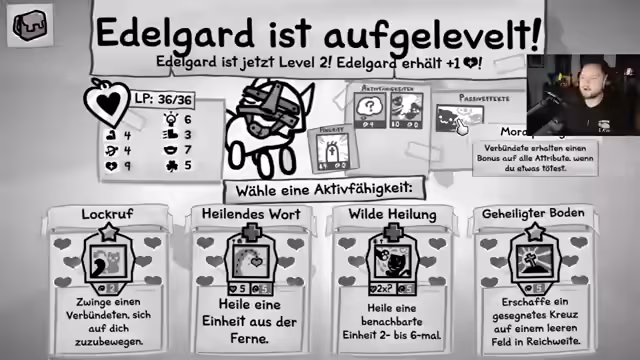 04:41:01Zu Beginn des Streams wird die Zusammenstellung des Teams besprochen. Die Streamerin wählt eine Klerikerin, da diese ein Muss-Held ist, äußert aber Bedenken wegen fehlenden Fernkampfs. Es werden die Fähigkeiten der ausgewählten Katzen analysiert. Die Klerikerin erhält den Verbotenen Furz, der ihren Grundangriff zu einem Fernangriff ändert. Die anderen Katzen, wie die Assassine Sika und der Lurch, werden mit ihren passiven Fähigkeiten wie Schattenschritt und Fernkampfangriffen vorgestellt. Die Anpassung der Fähigkeiten ist entscheidend für den Erfolg.
