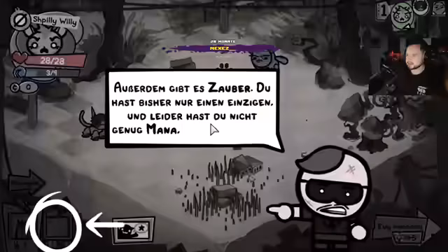 04:18:03Mr. Scroggins stößt auf eine mysteriöse Box, die mit einem Monster spricht. Das Monster bietet an, den Weg freizugeben, im Austausch für Lebenskraft. Nachdem Mr. Scroggins zustimmt und den Kontakt herstellt, erleidet er sechs Schaden. Anschließend findet er den 'Überlebenshut', der eine überraschende Wirkung am Kampfbeginn hat und das Risiko für zukünftige Kämpfe verringern könnte.
