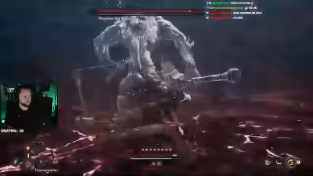 00:26:27Der Streamer wechselt das Gebiet, um an Teile für eine spezifische Rüstung, das Oberteil des Verschlingers der Dunkelheit, zu gelangen. Es wird nach Spinnenbeinen gesucht, die für den benötigten Craft benötigt werden. Nach einigen vergeblichen Versuchen und technischen Schwierigkeiten, wie 'verworfene Frames' während eines Uploads, wird der Gegner 'Spinne' gefunden. Die strategische Herausforderung besteht darin, die Spinne zu besiegen, ohne ihre Beine zu zerstören, da diese für das Crafting benötigt werden. Ein Bosskampf gegen einen 'Chaos-Typen' schließt sich an.