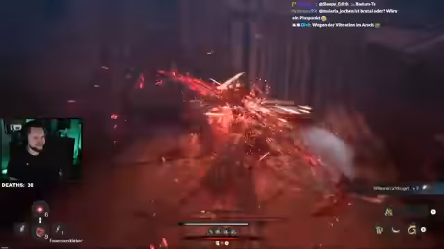 01:57:51Der Streamer kämpft gegen einen Elite-Gegner, der ihn regelmäßig infiziert und zum Kotzen bringt, was seine Ausdauer drastisch reduziert. Er stellt fest, dass dies nur auftritt, wenn seine Ausdauer durch Seuche auf null sinkt. Er analysiert seinen Build und konzentriert sich darauf, die Ausdauerregeneration zu verbessern, indem er passive Fähigkeiten nutzt, die Parrieren mit einer besseren Regeneration belohnen. Er tauscht eine Fähigkeit aus, um einen Sprungangriff zu bekommen, der eine Schockwelle erzeugt, und bemerkt den Mangel an Mana-Regenerationsmöglichkeiten.