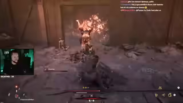 05:14:42In der neuen Region stößt der Streamer auf Dämonen, die sich als Menschen ausgeben. Er kämpft gegen sie und wird verseucht, was zu einem negativen Debuff führt. Er nutzt seine Sense und Großschwert, um Gegner zu besiegen, und stellt fest, dass nicht alle Angriffe geparrt werden können. Später trifft er auf die Hexe, eine Verbündete von Osmar, die ihm eine mysteriöse Laterne zeigt, die ihm angeblich den Weg weisen soll. Er versucht, die Bedeutung der Signale der Laterne zu deuten, während er sich auf den bevorstehenden Kampf mit der Hexe vorbereitet.