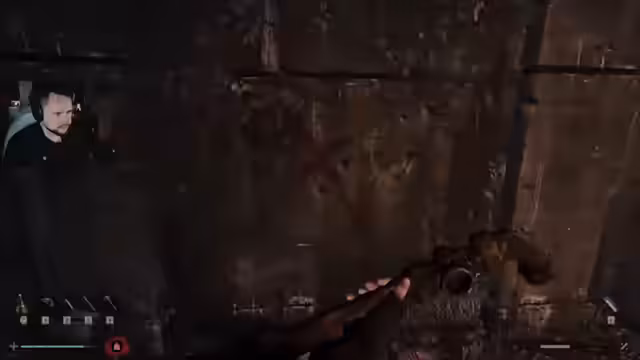 05:26:20Der Fahrstuhl führt nicht weit nach oben, und der Streamer findet sich in einem neuen Bereich wieder, wo er ein Geräusch wahrnimmt, das er als das Zerfetzen von Gegnern interpretiert. Er findet einen Schlüssel, muss aber feststellen, dass Waffen gegen einen bestimmten Gegner nutzlos sind, da dieser Kugeln zurückschleudert. Panik bricht aus, als er befürchtet, zu fallen und zu sterben. Er muss eine Taktik entwickeln, um den Gegner zu besiegen, indem er ihn nicht ansieht, wenn er blitzt. Das Inventar ist wieder überladen, und er muss sich von einigen Gegenständen trennen, um die Bewegungsfreiheit zu erhalten. Das gemeinsame Spielen mit einem Kollegen auf der Couch wird thematisiert, wobei die Schwierigkeit des Abwechselns und die unterschiedlichen Spielstile diskutiert werden. Er landet in einem Bereich, in dem er nicht speichern kann, was die Situation zusätzlich erschwert.