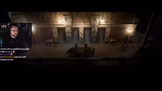 01:18:19Während des Streams werden mehrfach die gewöhnungsbedürftigen Tank Controls kritisiert. Der Streamer wechselt daher zu Maus und Tastatur. Er steht vor einem mechanischen Laser, der eine Tür blockiert, und entdeckt, dass das Spiel ihn anweist, nicht direkt auf den Laser zu schauen. Stattdessen muss er den Raum rückwärts durchqueren oder über eine Bodenkachel rollen, um die Barriere zu umgehen.
