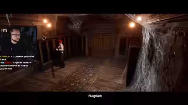 00:24:05Über eine interaktive Grammophon-Plattform erhält der Streamer Einblicke in die Hintergrundgeschichte. Ein Mann namens Hector versuchte, seine kranke Mutter zu heilen, was jedoch zu einem Experiment führte und eine Monster-Apokalypse auslöste. Der Streamer kämpft gegen eine Riesenspinne namens 'Christy', die in einem Glasgefäß wuchs. Der Kampf ist umständlich, da er seine Munition nach jedem Schuss einzeln nachladen muss.