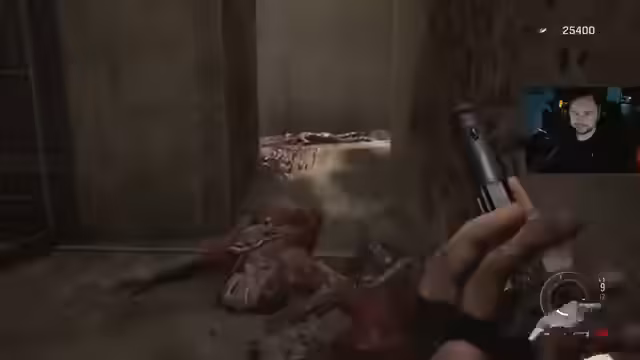 00:19:42Nach der Zahnputz-Pause beginnt das eigentliche Gameplay auf dem Albtraum-Schwierigkeitsgrad. Der Streamer ist von der emotionalen Musik und dem ersten großen Jumpscare sichtlich beeindruckt. Während er die Spielwelt erkundet, werden im Chat die Waffen modifiziert und ein Kampf gegen eine Spinne aufgenommen, der für den Streamer heftig ist.