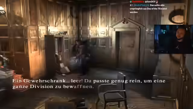 01:37:41Nachdem der Streamer kurz den Stream unterbrechen musste, kehrt er zurück in das Spiel Alone in the Dark. Er erkundet einen verschlossenen Schrank, wobei ein gefundener Schlüssel zunächst nicht passt. Er entdeckt eine leere Schublade, Munition und eine Büste von Richard Morton. Die Begegnung mit lichtempfindlichen Kreaturen stellt ihn vor Herausforderungen und er diskutiert über seinen Augenlasereingriff und die damit verbundenen Erfahrungen des Sehens.