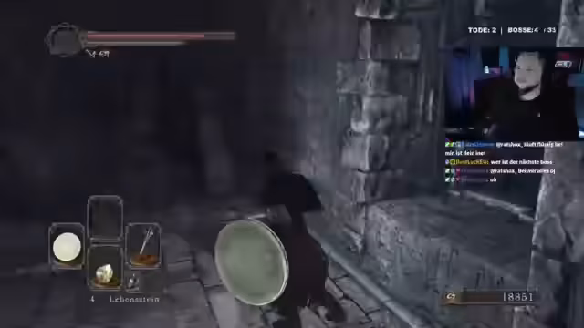 01:45:33Nach der Marathon-Diskussion kehrt Holly zu Dark Souls 2 zurück. Er erinnert sich an eine Fackel und versucht, eine geheime Tür zu öffnen, was zu technischen Problemen führt. Er ist irritiert, als seine Waffe nicht mehr wie erwartet schlägt, und die Gegner explodieren. Holly beschäftigt sich weiterhin mit der Angst vor Baby-Jumps und nutzt Feuerbomben, um die Situation zu meistern. Der Fokus liegt darauf, die Geheimnisse des Gebiets zu erkunden und vor allem am Leben zu bleiben.
