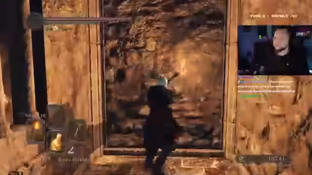 02:38:34Nach dem Kampf spricht der Streamer über die KI, die sich wie in Bloodborne anfühlt, und gibt zu, sich nicht sicher zu sein, ob er den Boss parieren kann. Nach einer erfolgreichen Tötung beschäftigt er sich mit der Waffenwahl, einem Streitkolben. Er findet diesen sehr stark und hofft, dass er damit durchkommt, da die Ausdauer knapp ist.