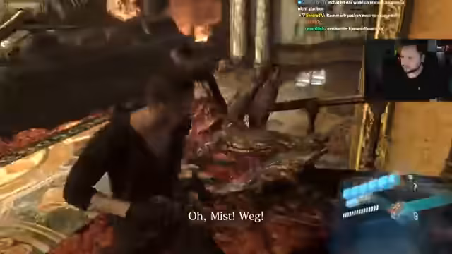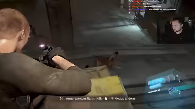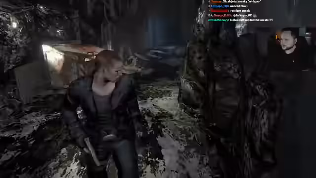 00:21:33Der Stream konzentriert sich nun auf den Start der Jake-Kampagne. Holly spielt als Jake Miller, der mit Sherry Birkin durch eine actionreiche Sequenz flieht. Die Story stellt Jake als einen vor, der gegen ein biologisches Waffensystem, den C-Virus, immun ist. Es kommt zu ersten Kämpfen mit Infizierten und einer Auseinandersetzung mit dem Bossgegner Ustanak, einem riesigen BOW, der Jake verfolgen will.