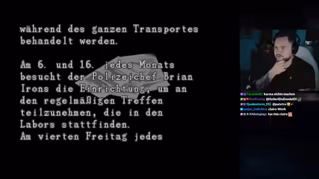 03:03:12Der Streamer vertieft sich in die umfangreiche Hintergrundgeschichte des Resident-Evil-Universums. Er liest das Tagebuch des Klärwerkmanagers, das Anspannung und Paranoia schildert, und kommentiert die seltsamen Verhaltensweisen von Kollegen wie Don und Polizeichef Irons. Er verweist auf die komplexen Machenschaften von Umbrella und die Untersuchungen, die gegen das Unternehmen eingeleitet wurden. Darüber hinaus stellt er eine Verbindung zur Lore von Resident Evil 4 her, indem er die Entdeckung der Parasiten erwähnt.