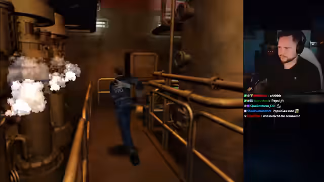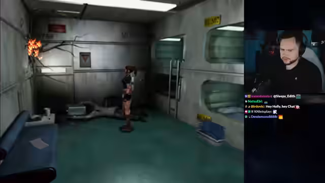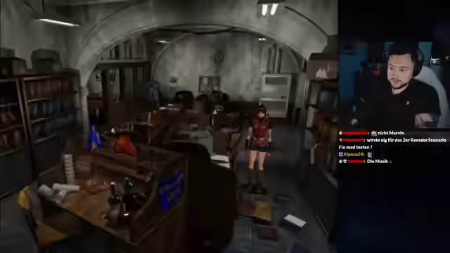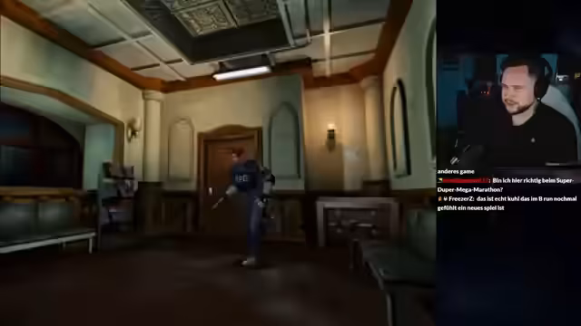 00:34:37Nach technischen Vorbereitungen startet der eigentliche Gameplay-Teil von Resident Evil 2 mit Claire A. Die Ankunft im überfallenen Polizeirevier wird gezeigt. Der Streamer interagiert mit der Umgebung, findet Munition, Dokumente und entdeckt Geheimnisse, wie das Spawnen von Brad Vickers. Die visuelle und akustische Darstellung wird gelobt, besonders der Sound und die Atmosphäre im Vergleich zum Remake.