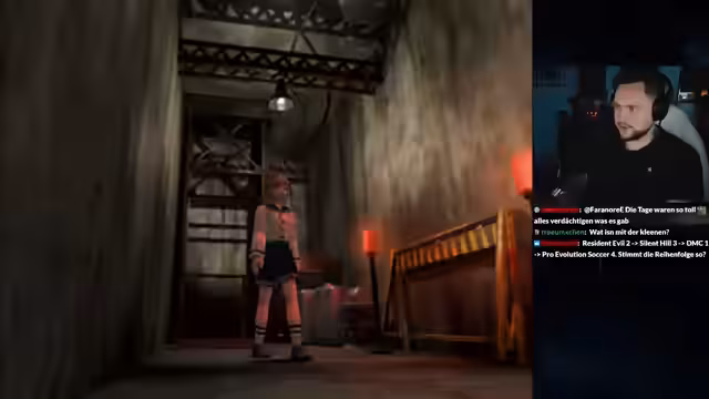 00:22:40Es wird nach den persönlichen Resident Evil 2-Erinnerungen der Zuschauer gefragt. Diese teilen ihre Kindheitserfahrungen, wie sie das Spiel aus Angst mit Verwandten oder durch Zuschauen spielten. Ein Zuschauer erzählt, dass er seinem Vater als Lösungsbuch diente, während ein anderer seine ersten Albträume von Zombie-Hunden hatte. Diese Interaktion schafft eine gemeinschaftliche, nostalgische Stimmung.