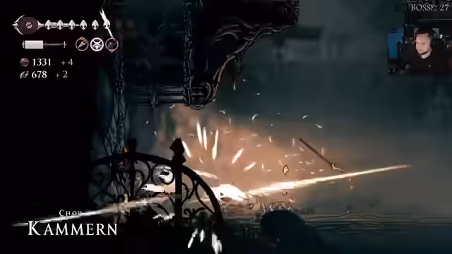 00:02:29Der Streamer reflektiert über den Namen Silk Song und dessen Bedeutung, wobei er Seide (Silk) und Musik (Song) als zentrale Elemente erkennt. Er spricht über seine anfängliche Unkenntnis des Namens und ist froh, diese Erkenntnis mit seinen Zuschauern geteilt zu haben. Weiterhin diskutiert er über das Damage Upgrade im Spiel, das seiner Meinung nach erst relativ spät im Spielverlauf verfügbar wird, etwa nach 50 bis 60 Prozent des Spiels. Er erinnert sich daran, dass er den zugehörigen Shop erst gefunden hat, nachdem er von einem Zuschauer darauf hingewiesen wurde. Er überlegt, ob der Morgenstern-Typ in der Arena zu finden ist und fragt sich, wo er diesen findet. Er farmt Perlen, um das letzte Damage Upgrade zu bekommen, hat aber mit einem Bug zu kämpfen, der die Cutscenes verlangsamt. Er erinnert sich, dass er das Problem durch Ändern der Vollbildeinstellungen beheben konnte.