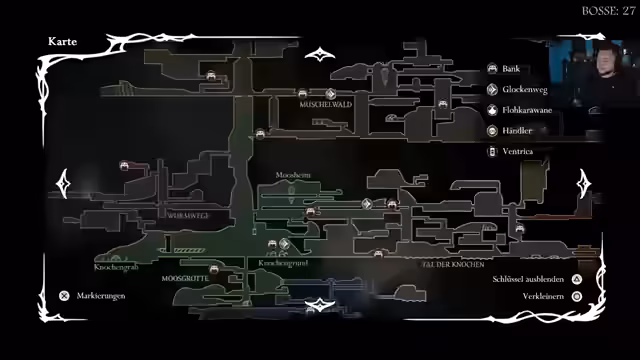 06:09:29Der Streamer hat es fast zum Shortcut geschafft und nutzt nun einen Kokon. Es wird überlegt, was es noch so versteckt gibt und welcher NPC etwas Abartiges haben will. Der Streamer versucht sich zu erinnern, wo diese NPC war, und stellt fest, dass er die zuvor gefundenen Gegenstände sofort verbraucht hat. Es wird überlegt, ob das gefundene Abartige das Richtige ist und was man damit machen soll. Der Streamer ist sich unsicher, ob sein Gedanke mit Abartig falsch ist und ob er etwas voll cooles herausgefunden hat. Es wird ein weinendes Baby erwähnt. Der Streamer sucht nach der NPC, die sich in einer verschlossenen Kammer befand, und erinnert sich, dass der Ort etwas grüner war und links vom Glockenherz lag. Es wird vermutet, dass es sich um die NPC handelt, die Moosbrühe macht, aber es stellt sich heraus, dass sie es nicht ist. Der Streamer sucht nach einem NPC, der in einer Glocke sitzt und etwas Abscheuliches oder Abartiges verlangt.