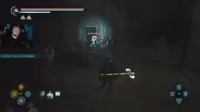 02:21:35Der Streamer erkundet die Turmspitze und findet den Sicherheitsplan in einer Zeitschleife. Er erhält neue, mächtige Schmiedgegenstände und ist beeindruckt von seiner neuen Fähigkeit, die als Overpowered (OP) beschrieben wird. Diese Fähigkeit ermöglicht es ihm, Gegner zu betäuben und stärker zu werden, solange er Feinde besiegt. Der Streamer ist begeistert und bezeichnet den Fund als Geheimnis, das nicht an die Entwickler verraten werden soll.
