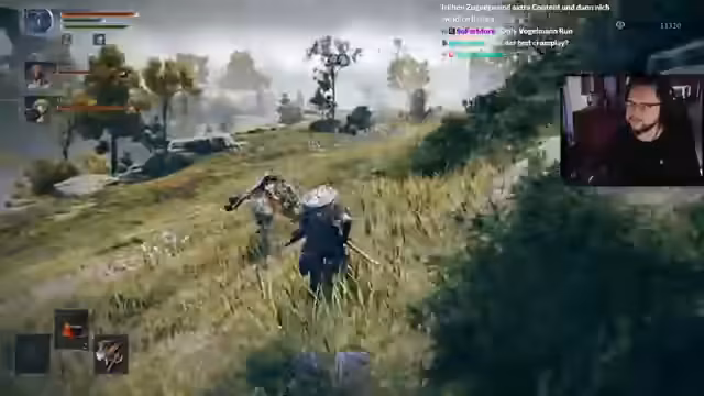 01:38:31Das Gameplay ist geprägt vom Sammeln von Beute (Loot) wie neuen Waffen, Talismanen und Materialien. Der Streamer experimentiert mit verschiedenen Waffen, darunter eine Eis-Hellebarde und ein Katana, das bei Procs viel Schaden anrichtet. Er erklärt das System des Waffenlevelns, das benötigte Ressourcen wie Drachenschmiedesteine erfordert. Wichtige Mechaniken beinhalten passive Effekte von Waffen, die auch bei anderen ausgerüsteten Waffen aktiv sind, und die Fähigkeit, den eigenen Schaden an Gegnern zu wiederholen, was speziell gegen blutende Gegner effektiv ist.