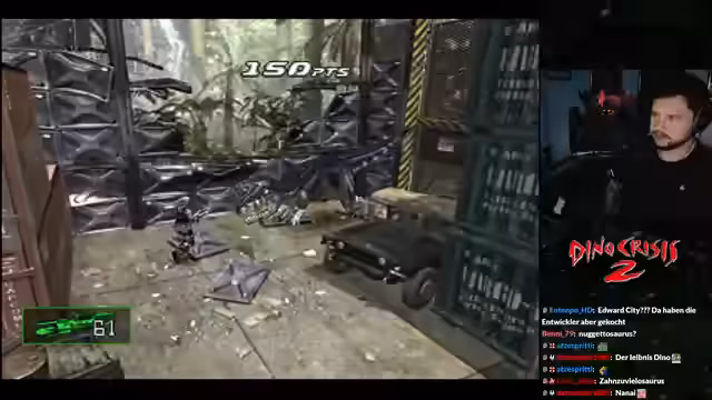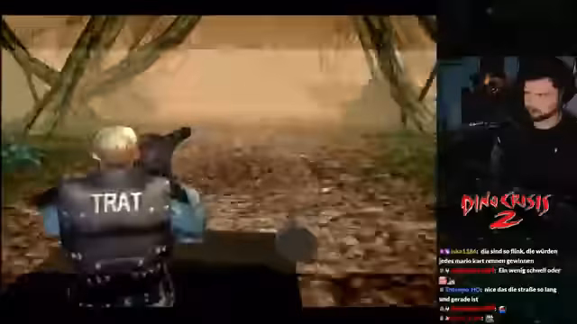 03:13:52Während des Streams werden mehrere interessante Fakten zu den Spieles geteilt. So sollte Dino Crisis 2 ursprünglich Resident Evil 4 sein, weshalb der Protagonist wie Leon Kennedy aussieht. Des Weiteren wurde das Spiel ursprünglich für zwei Spieler geplant. Die Erkundung führt die Spieler durch einen Vulkantunnel, wo 'Vulkan-Pokémon' und ein 'Alusaurus' bekämpft werden. Der Streamer betont seine Freude an den Soundtracks des Spiels und an dem Kampf gegen die Dinosaurier.