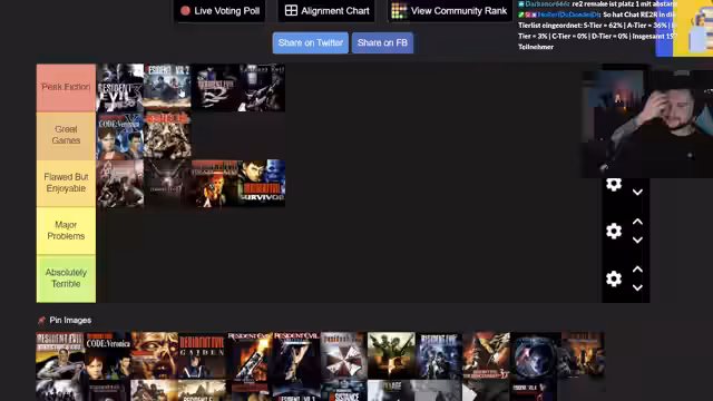 07:10:37Der Streamer ordnet Resident Evil 2 Remake in eine Tierliste ein, vergleicht es mit anderen Teilen wie Resident Evil 1 Remake, Code Veronica und dem Original Resident Evil 4. Das Remake wird als 'Peak Fiction' eingestuft, trotz Kritik an der Umsetzung der A- und B-Szenarien, die als zu ähnlich und nicht optimal umgesetzt bewertet werden. Stärken sind die Grafik, das Gameplay und die Atmosphäre, während die Soundtracks teils als weniger bedrohlich als im Original beschrieben werden.