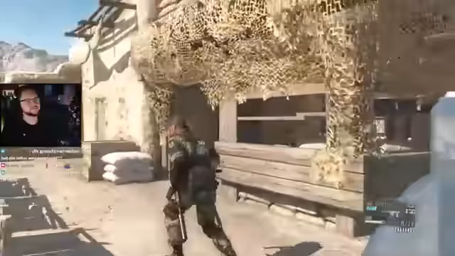 03:55:27Der Streamer kommentiert die erhöhte Munitionskapazität und die bevorstehende Entführung eines Dolmetschers mit roter Mütze. Ein Gefangener wird entdeckt, was zur Eile mahnt. Es stellt sich heraus, dass der Dolmetscher noch jemanden treffen sollte. Der Streamer verfolgt das Ziel und rettet gleichzeitig eine Geisel. Währenddessen wird im Chat über die vielen Schlangen-Namen diskutiert. Es stellt sich heraus, dass man das Verhör abhören kann. Die Contract Forces of Africa (CFA) werden als rein geschäftsorientierte Söldner beschrieben. Es wird überlegt, ob man CQC-Aktionen aneinanderketten kann, ähnlich wie in Peace Walker. Der Streamer gerät in Panik, weil er befürchtet, das Ziel verpasst zu haben, erkennt aber, dass die Gegner zu einem anderen Punkt unterwegs waren. Miller gibt vage Anweisungen, während der Streamer vermutet, dass die Rettungsmission eine Finte ist. Ein Schalldämpfer wird gefunden, und der Streamer sucht nach dem Zielgebiet, das zunächst leer erscheint. Schließlich wird ein neues Ziel entdeckt, und der Streamer findet einen Gefangenen.