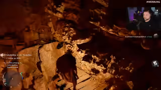 02:52:52Anstatt direkt der Haupthandlung zu folgen, widmet sich der Streamer mehreren Nebenquests. Er erkundet eine verdächtige Höhle und sucht nach vermissten Personen und Schafen. Er nutzt das Vision-Gerät, um Enthüllungen an Wänden aufzudecken, und findet Erinnerungsfragmente, die eine dunkle Geschichte über Schwarzhandel in der Höhle enthüllen. Dabei stellt er fest, dass das Spiel sehr viel looten lässt, was aber unübersichtlich sein kann.