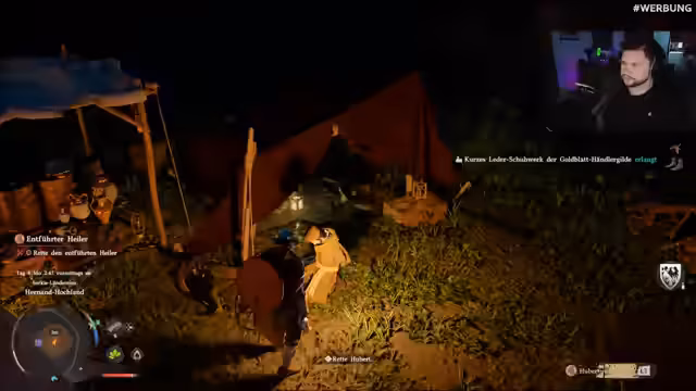03:29:05Der Fortschritt in der Hauptquest wird fortgesetzt, indem man mit NPCs wie 'Wully' interagiert und ihm hilft, auf das Pferd zu steigen. Dabei kommt es zu einem Missverständnis, da der Streamer den falschen Charakter anspricht und die Quest fehlerhaft abschließt. Der Fokus verschiebt sich dann auf die Rettung des Heilers 'Hubert', der von Banditen in eine Höhle namens 'Geisterversteck' entführt wurde. Die Story zeigt emotionale Dialoge und führt zu neuen Aufträgen, wie die Bekämpfung des Bosses 'Hornspalter'.