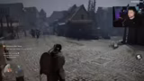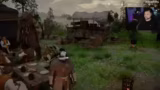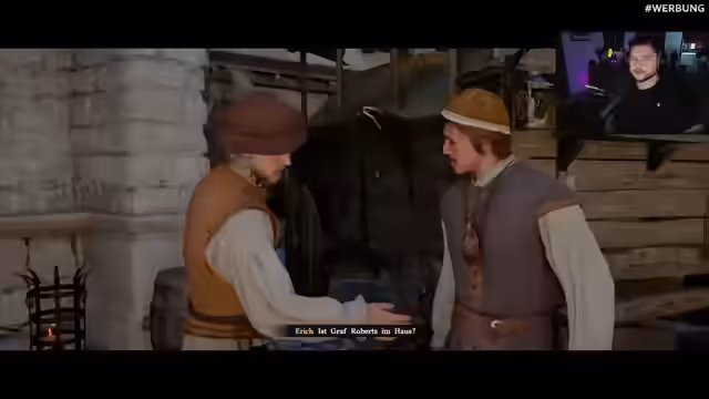 01:03:06Das Tutorial endet, und der Streamer spawnt im Hauptort Hernand. Er beginnt mit der ersten Hauptquest, die ihn in die Kanalisation führt, wo er ein verzweifeltes Kind findet. Neben der Haupthandlung nimmt er auch Nebenquests an, wie das Armdrücken gegen einen Dorfbewohner und das Beseitigen eines Feuers in einem Haus. Er lernt das Inventarsystem, das Untersuchen von Objekten und die Interaktion mit NPCs kennen.