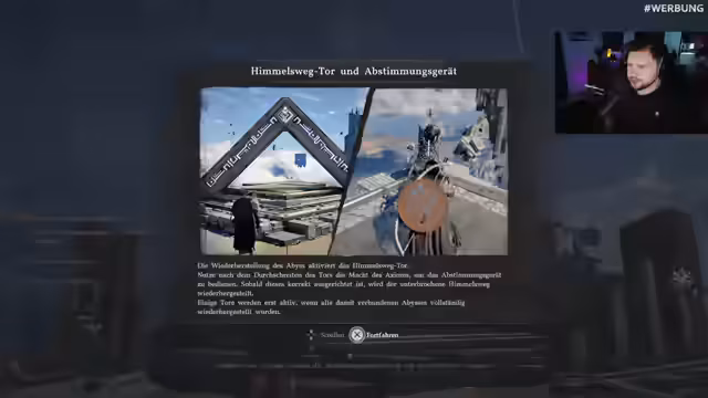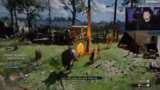 01:53:40Nach der erfolgreichen Aktivierung eines Portals betritt der Streamer die Hauptwelt. Er äußert sich positiv über das Spiel, das er als riesigen Spielplatz beschreibt, der sowohl MMO- als auch Singleplayer-Elemente vereint. Er untersucht die Umgebung, interagiert mit der Umgebung, klettert und sammelt Erinnerungsfragmente, um Visionen von vergangenen Ereignissen zu sehen und weitere Story-Details zu enthüllen.