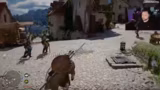 00:07:10Nachdem das Spiel geladen ist, beginnen die ersten Eindrücke. Der Streamer findet den Soundtrack, insbesondere die Bosskämpfe, exzellent und wertet ihn mit 12 von 10. Gleichzeitig kritisiert er, dass das Spiel zu überhyped sei und viele falsche Erwartungen wecke. Er positioniert es eher als einen großen Spielplatz mit komplexer Steuerung und vergleicht es mit Dragon's Dogma, anstatt es mit Witcher oder Red Dead zu vergleichen. Er erwähnt auch technische Probleme wie einen Input Lag.
