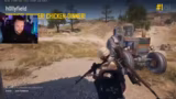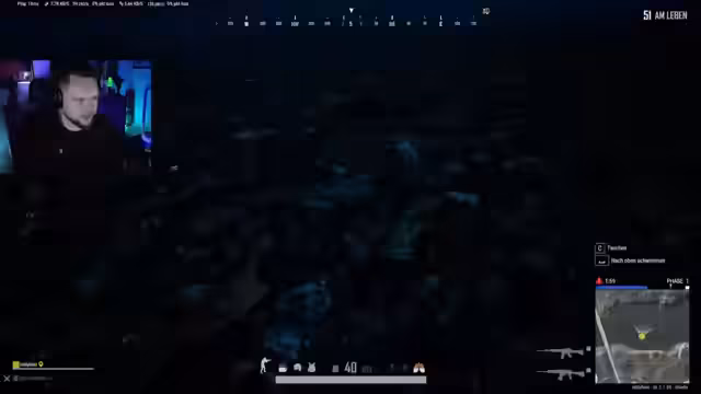 03:39:53Nach der Landung geraten die Streamer in ein chaotisches Szenario. Sie werden von einem Auto verfolgt und finden sich in einer offenen exponierten Position wieder, die als sehr schlecht beschrieben wird. Die Kommunikation ist angespannt und geprägt von Fehleinschätzungen, da Gegner sowohl oben auf dem Berg als auch von hinten erkannt werden. Trotzdem entscheiden sie sich, gemeinsam in die nächste Zone zu ziehen, auch wenn die Überlebenschancen fraglich sind.