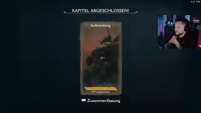 02:49:25Das Spiel geht in ein neues Kapitel über, 'Auferstehung', in dem der Spieler wieder in seinem Titanen umherlaufen kann. Der Streamer äußert seine Erleichterung, dass das Spiel nicht nur in einem kosmischen Universum stattfindet. Er erwähnt, dass er bisher zwei von 22 Kapiteln nicht vollständig durchgespielt hat und seine Anerkennung für die Entwicklung des Spiels zeigt.