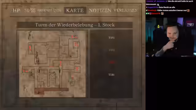 07:09:37Der Streamer hat Schwierigkeiten, sich im Schloss zu orientieren, und sucht nach dem Teehaus, das die Katze als Treffpunkt erwähnt hat. Er erkundet verschiedene Etagen und Bereiche, findet jedoch keinen klaren Hinweis. Die Verwirrung wird durch die ständige Verfolgung durch den Dämon und die Unübersichtlichkeit der Karte noch verstärkt. Der Streamer speichert häufig, um Fortschritt zu sichern, und plant, das Spiel später fortzusetzen.