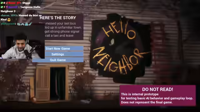 03:02:42Im Spiel wird der Streamer von der KI des Nachbarn gejagt und muss sich verstecken. Nach einer gefährlichen Flucht trifft er auf eine Frau namens Lindsay, die behauptet, einen Weg aus der Stadt zu kennen. Die Flucht wird zu einem psychologischen Kampf, da der Streamer Lindsay misstraut und sie für eine Gefahr hält, die sie alle in den Tod führen könnte.