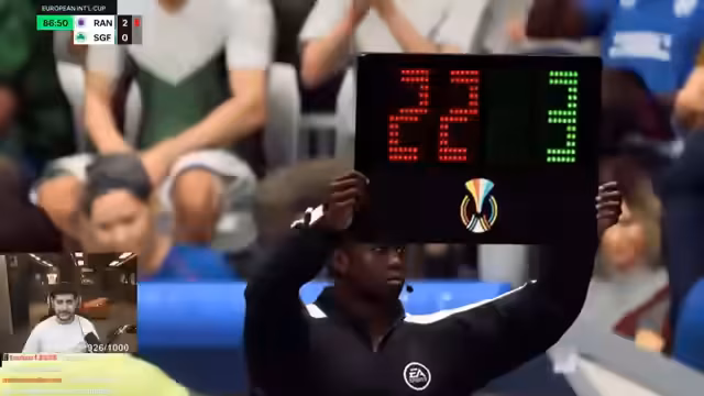 00:38:12Während des Pro-Clubs-Spiels führt der Streamer ein durchgehendes, langes Monolog über seine Aktionen und die Spielsituationen. Er versucht ständig, seine Mitspieler zu instruieren und kritisiert gelegentlich deren Spielweise. Gleichzeitig interagiert er stark mit dem Chat, unterbricht sich aber häufig durch seine eigenen Rufe wie 'Defend!' oder 'Pass to me!'. Der Fokus liegt auf dem eigenen Bemühen, während andere Teammitglieder oft als unzuverlässig oder zu langsam empfunden werden.
