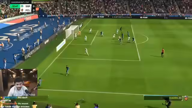 01:21:40Der Stream beginnt mit intensivem FIFA-Spielgeschehen, in dem der Streamer und sein Team gegen Gegner antreten. Es kommt zu hitzigen Auseinandersetzungen über Spielzüge, wie zum Beispiel Corner-Kicks und Angriffe, wobei sich die Spieler gegenseitig Feedback geben. Die Kommunikation ist geprägt von lauten Rufen, wie 'Mika läuft weg!', und dem Versuch, das Spiel zu kontrollieren. Die Stimmung ist angespannt und emotionsgeladen, da das Team versucht, das Spiel zu drehen und den Gegner unter Druck zu setzen.