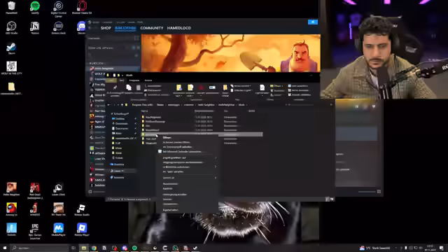 04:54:42Eine weitere Geschichte handelt von drei Kindern, die auf einem Friedhof Verstecken spielen. Sie stoßen auf einen alten Mann, der mit bloßen Händen ein Grab ausgräbt. In Panik fliehen sie und erfahren später, dass der Mann ein Verbrecher war, der Leichen exhumierte, um Drogen darin zu verstecken und zu schmuggeln. Der Streamer beendet die Horror-Reactions und kündigt an, Hello Neighbor Mods spielen zu wollen. Es gibt jedoch technische Probleme beim Laden der 'Schoolboy Runaway'-Mod, und stattdessen wird eine 'Fred Beer Runaway'-Mod geladen, was zu Verwirrung und Frustration führt. Der Streamer und ein französischer Freund versuchen, die Probleme zu beheben, was zu humorvollen Interaktionen und Diskussionen über Nationalitäten führt.