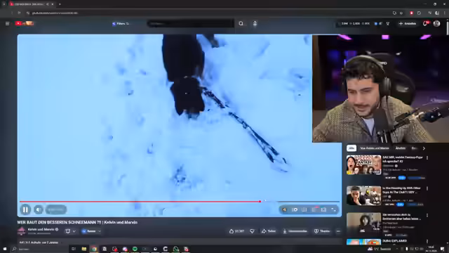 01:14:07Der Streamer schaut sich ein altes Video einer Schneemann-Challenge zwischen Calvin und Marvin an und kommentiert humorvoll die Bauweise und die verwendeten Accessoires. Er ist überrascht, als eine Gurke anstelle einer Karotte als Nase verwendet wird und scherzt über die Platzierung. Die Diskussion über den 'besten Schneemann' führt zur Recherche nach Weltrekorden. Er entdeckt, dass der größte Schneemann der Welt in der Steiermark, Österreich, 38 Meter hoch war und mit einem Kran gebaut wurde. Er vergleicht ihn mit einem 'Schneefinger' oder einem Charakter aus Rick and Morty, Mr. Kakapoboloch, aufgrund seiner schlanken Form. Er findet einen anderen deutschen Rekord-Schneemann, der breiter und traditioneller aussieht, cooler. Die Suche nach dem 'bestaussehendsten' Schneemann führt ihn zu TikTok, wo er auf beeindruckende, aber auch gruselige und ungewöhnliche Schneemann-Kreationen stößt, darunter einen Panzer. Er ist fasziniert von der Kreativität und dem Detailreichtum einiger dieser Kunstwerke, die weit über das hinausgehen, was man von einem Schneemann erwarten würde.