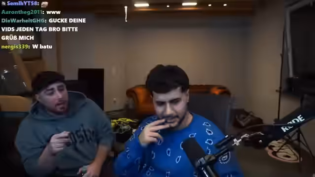 00:09:16begrüßt Berk als ersten Gast, mit dem er früher das 'goldene Kanacken-Duo' bildete. Sie sprechen über alte Zeiten und gemeinsame Projekte. Berk erzählt, dass er bald wieder aktiv streamen wird, nachdem er Internetprobleme hatte. Als zweiten Gast begrüßt er Bartu. Es wird kurz über Gigant gesprochen, dessen Lachen Bartu ähnlich ist, was oft zu Verwechslungen führt. Es wird erwähnt, dass Bartu und Gigant gut befreundet sind und Zuschauer oft denken, Bartu sei Gigant. Sie sprechen darüber, dass Gigants alte Clips immer noch viral gehen und er als Clipfarmer bekannt ist. Berk wird dafür gelobt, die Sigma-Indian-Edits initiiert zu haben, die viral gingen. Es wird über das ungewohnte Gefühl gesprochen, wieder live zu sein und mit dem Chat zu interagieren.