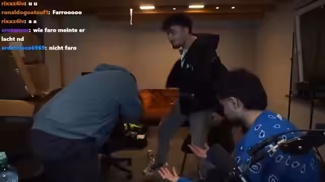 02:31:48Es beginnt eine Runde mit Witzen, bei denen die Anwesenden auf die Pointen reagieren. Ein Witz über einen Araber namens Ali, der auf Frauen und Männer steht, sorgt für Gelächter. Es folgen weitere Witze, darunter einer über einen nächtlichen Anruf in einer Bäckerei. Ein Teilnehmer namens Faro wird für seine Reaktion gelobt, während jemand im Chat fordert, ihn wegen einer rassistischen Äußerung zu sperren. Es wird vereinbart, dass die Person, die die Witze vorliest, eine Auszeit bekommt. Die Witze werden als 'Flachwitze' bezeichnet, und der erste handelt von einem Piraten am Computer. Die Witze werden von JGPT geschrieben. Es folgen weitere Witze über einen Obdachlosen, WLAN und Reis. Es wird festgestellt, dass die Witze gut ankommen und dass man mehr davon haben sollte. Die Teilnehmer tauschen Plätze, und Faro wird für seine starken Witze gelobt. Es wird eine Wasserflasche getauscht, und ein Teilnehmer versucht, in den 'Radiomodus' zu kommen, um Witze zu erzählen. Ein Witz über eine Gruppe von Wölfen wird erzählt, gefolgt von einem Witz über etwas Weißes, das beim Essen stört. Ein Teilnehmer gibt zu, dass er die Witze von JGPT schreiben lässt. Es wird über die Qualität der Witze diskutiert, und ein Teilnehmer gibt zu, dass er sich 'gecatcht' hat und dass die Reaktionen echt sind. Die Platzierung der Teilnehmer wird diskutiert, und Faro wird als möglicher Gewinner genannt.