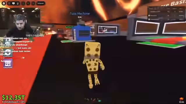01:40:41Nach dem W-Event wird die Fusionsmaschine genutzt, um Pets zu kombinieren und die Chance auf ein Secret Pet zu erhöhen. Es werden Pets wie Orkalelo und der Stuhl sowie Lavakas eingefügt. Gleichzeitig wird spekuliert, ob ein weiteres Secret Event oder eine Kombination ansteht, da die Wahrscheinlichkeit nach der Reihe der Events wieder sehr hoch ist und der Streamer auf einen finalen 'scheppernden' Moment hofft.
